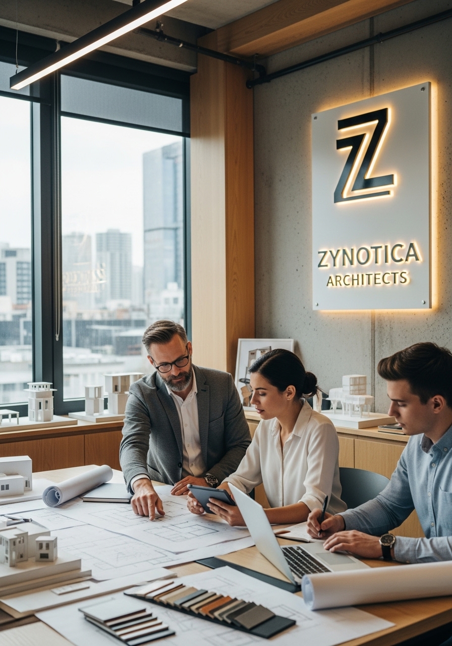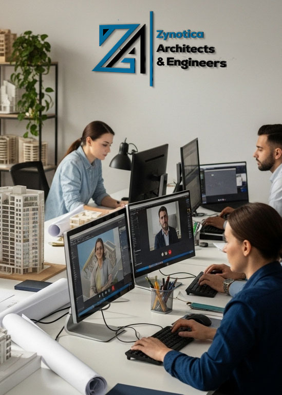 Zynotica Architects and Engineers are a team of skilled architects, engineers, and 3D artists passionate about creating architectural designs that blend innovation with practicality. With extensive experience across residential, commercial, and industrial sectors, we provide BIM modeling, interior and exterior design, 3D animation, and drafting